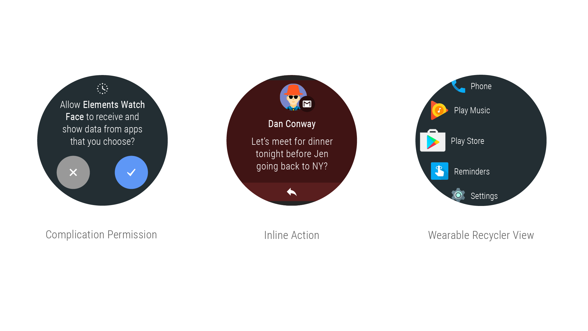 The marquee feature of this release is the launch of Google Play on Android Wear. The Play Store for Android Wear allows users to install apps directly on the watch. With the 2.0 update, watches don’t need to be paired with a phone, so users will be able to simply use the Play Store on the web, find apps they want to install to their watches and bypass their phone completely. Developers can now build and publish these Android Wear 2.0 apps and make them discoverable in Google Play.
