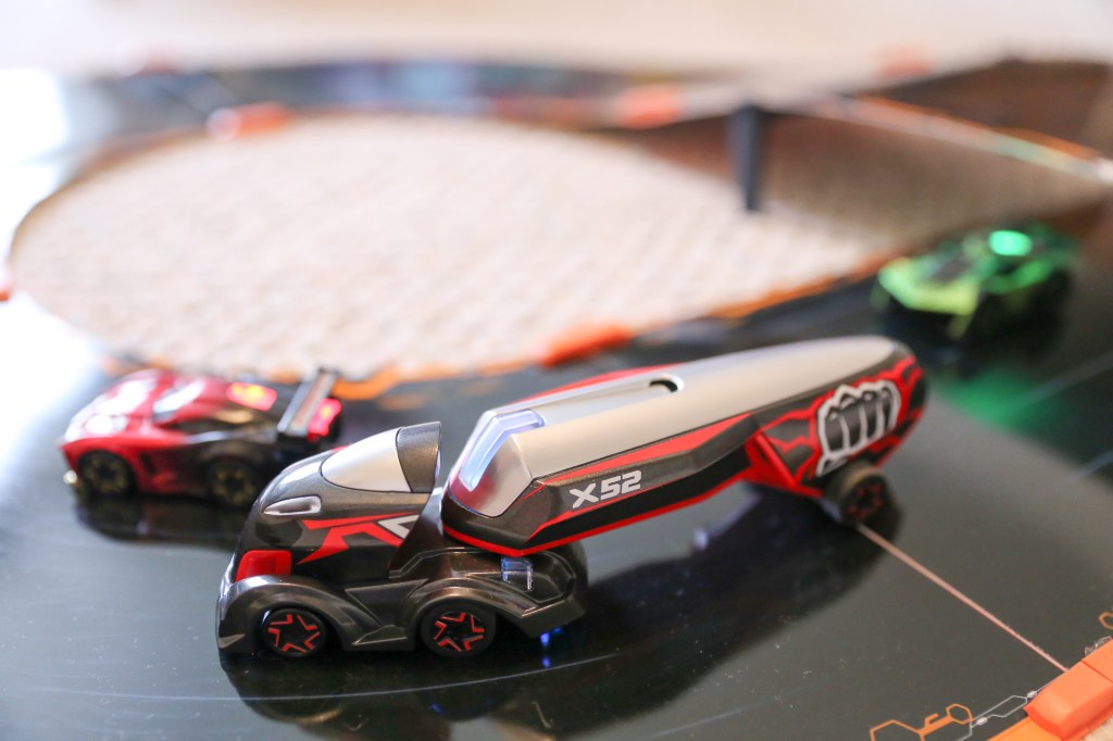 Eventually the novelty of the big trucks wears off after a few races. My kids love to break out Anki every couple of months. We clear floorspace in their playroom and set it up. The track sections snap together so in theory there are countless ways to make a track, but most of the time, we end up with similar-looking tracks. We race around the track a few times and then the track sits unused for weeks until I pack it up.
