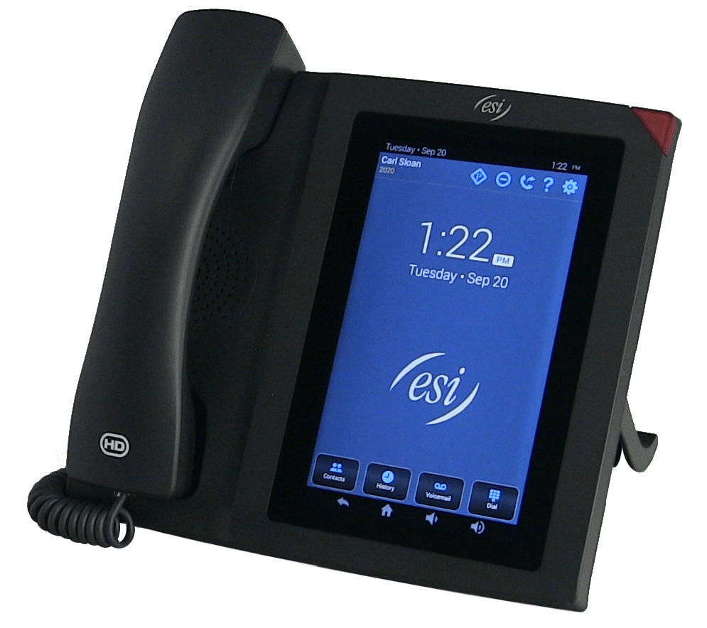 ESI is calling its rather familiarly named product a “smartphone for the desktop,” a fancy way of saying that it’s an office phone with a 7-inch touchscreen tablet built in for accessing contacts, recording, teleconferencing and watch and recording visual voicemail.