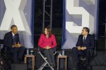 Later in the day, Obama took the stage with DiCaprio and climate scientist Dr. Katharine Hayhoe to talk about climate change and how important it is that we deal with it now, not later. At one point, Obama said, “If we tap the brakes now, then we don’t go over the cliff. When you think about climate change there’s a big difference between the oceans rising three feet or ten feet. Three feet, it’s going to be expensive and inconvenient and disruptive….But it’s probably manageable. Three feet means you move the houses back a little bit from the beach. Ten feet means the beach doesn’t exist.”