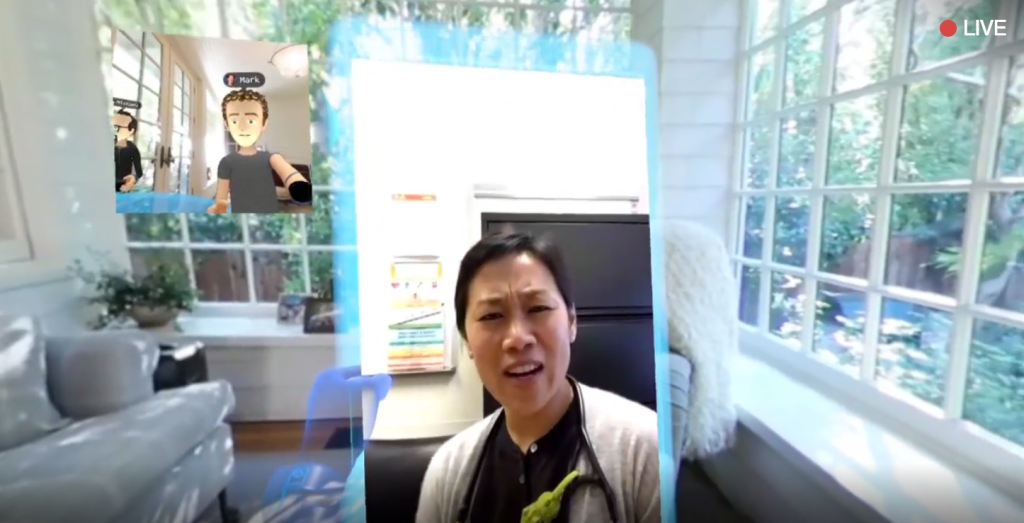 It appears that Facebook is finally confident enough with its VR arm that it’s willing to promote cross-network compatibility. The Messenger video call which came from his wife Priscilla Chan while she was at work, popped up on a virtual wrist-worn device. After he physically (virtually?) tapped on the notification, the video call opened in a separate window and Zuck was able to chat while engaging with the virtual environment while the call stayed in his field-of-view. Zuckerberg also teased direct posting to Facebook after taking a VR selfie mid-call.