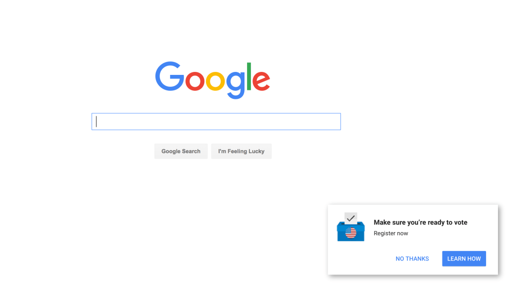 Google isn’t the only web company involved in a voter registration push, of course — Google-owned YouTube, Facebook, Snapchat, Twitter and others are involved in similar efforts.