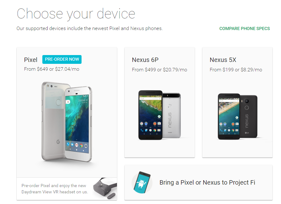 With the launch of the new Pixel phones, Google removed the Nexus 6P and 5X from its main online store. That seemingly left the rather pricey Pixel and Pixel XL as your only options for using Project Fi if you didn’t own one of those cheaper phones already. But here is an interesting twist: You can still buy them if you sign up for Project Fi — and you can even get them on Google’s new interest-free installment plans, too. The 6P is currently available with a $100 discount and the 5X is $150 off.