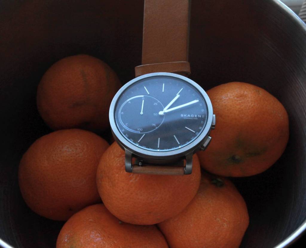 The Skagen Hagen is basically an activity watch similar to the Withings Activite and the watches containing smart movements from MMT. The watch can measure your steps and sleep patterns and vibrates when you get a notification on your phone. The battery lasts four to six months and you can easily swap it out for a new one by opening the back case.
