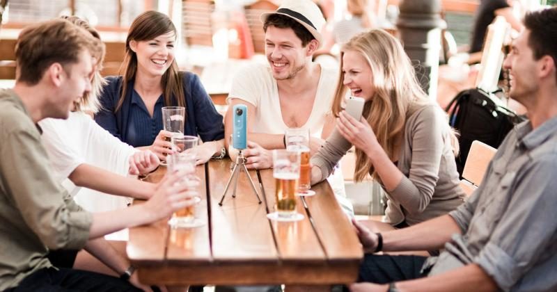 Mid-tier in 360-degree camera land means $300, which isn’t all that much lower than the top-of-the-line Theta S’s $350 asking price. That said, the company hasn’t really cut all that many corners either. For the most part, the click-to-shoot camera maintains aesthetic consistency with the higher end model — albeit a bit more colorful this time out (pictured above with some fun-loving folk).