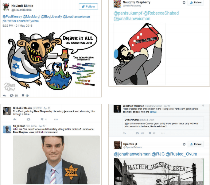 According to a new report from the Anti-Defamation League, anti-semitic hate speech targeting journalists has seen a meteoric rise on Twitter — thanks to the rhetoric in the 2016 Presidential Campaign.