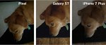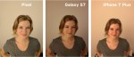 Indoors, the differences between the three cameras are more pronounced, especially in very low light. Here, the Galaxy S7 appears to have the edge when it comes to color balance, as well as noise and even possibly detail. The iPhone 7 Plus does appear to be more accurate in terms of its color capture, but it’s still tough to pick an outright favorite. The Pixel XL, to its credit, does very well in the portrait under adequate, but not bright, indoor lighting.