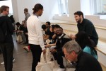 The store is broken up by product. In the back, two small glass cubicles are made up to look like a living room and kitchen, where Google reps demonstrating Home’s smart home functionality, from turning on the TV to beat boxing by request. A line of people nearby wait to test out the new Daydream handset, just in front of a row of Pixels.