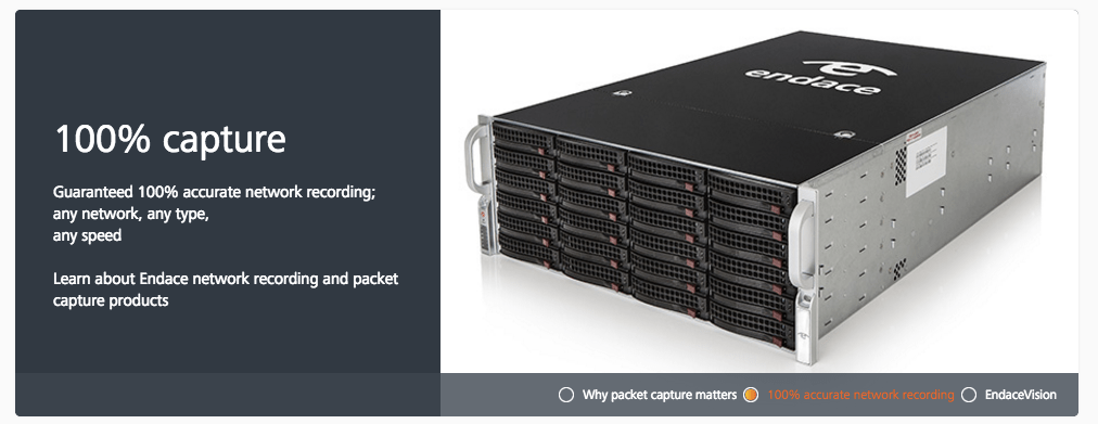 Endace’s website touts its ability to offer “100% accurate network recording, any speed, any network”, going on to note:
