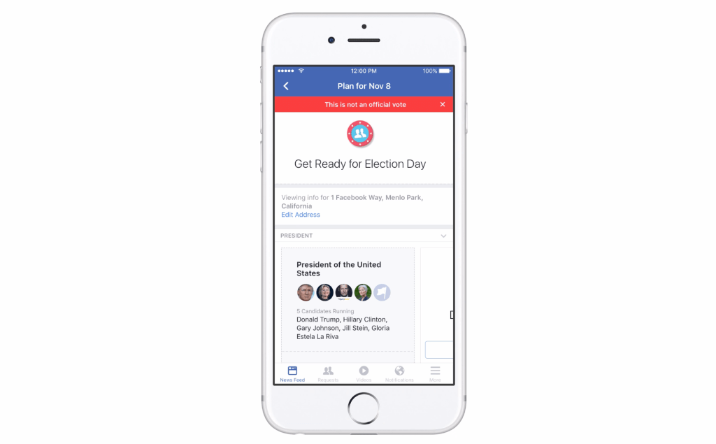 The vote planning feature is the latest of several election-oriented features that Facebook has introduced. Earlier this year, it’s register-to-vote feature was credited with a spike of 2 million people in voter registration, and the company also recently made it possible for political candidates to add their stances on issues and endorsements to their Facebook pages. But this is the first in-depth political feature from Facebook. While the feature will go live today, most users won’t start seeing it pop up in their newsfeeds until next week.