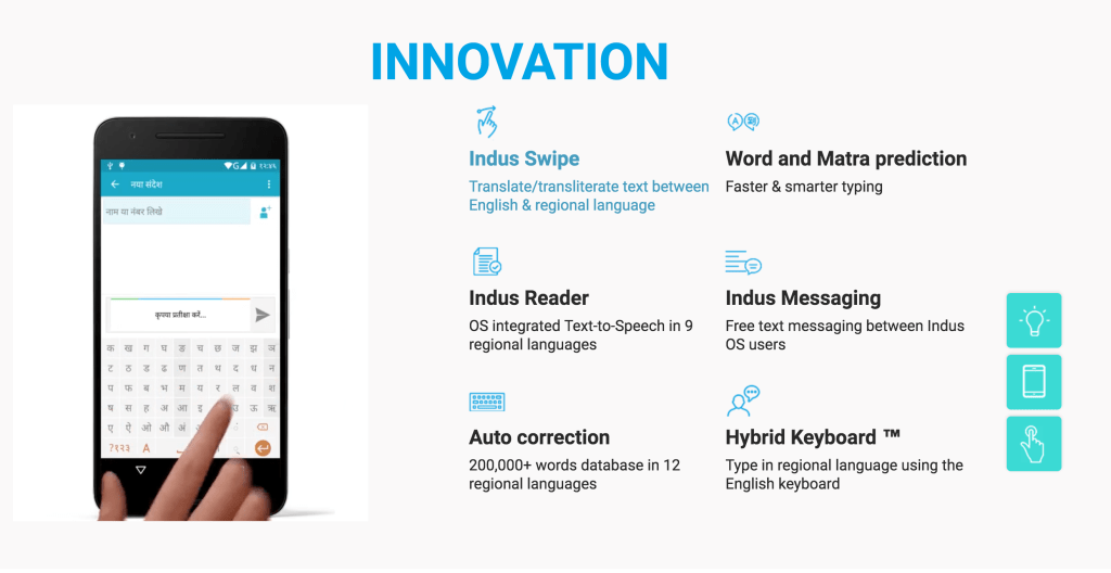 Android accounts for 88 percent of all smartphones sold in India, which is where Indus OS sees its opportunity. The startup has retooled the Google-owned operating platform to give localized features — which include translation/keyboards for India’s numerous languages, a simpler user interface, free messaging, and localized apps — which it believes are key to developing smartphones that can be used by the next wave of less-savvy, first-time smartphone owners.
