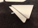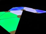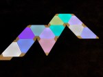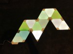 The panels are triangular (about 9″ on each side), and can be connected to basically make any shape or design you want. Nine come in a set, and you can buy packs of three more to create more intricate designs. They are connected by a small “chip” that literally connects the two together. Since they connect together only the first panel needs to be plugged into the wall.