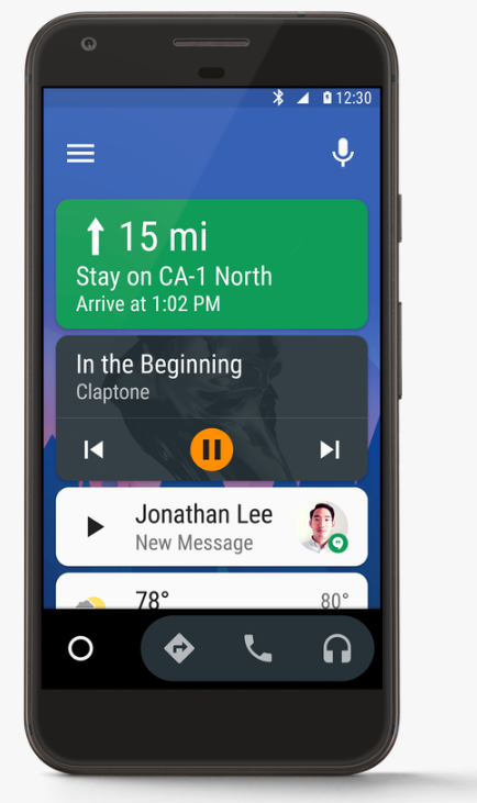 So what’s the point of that? Android Auto on the phone provides you with a simplified interface that combines directions, music, and incoming messages into a relatively distraction free experience. That’s essentially the same interface you would see on an in-car display with Android Auto support. Android Auto works with popular apps like Spotify, Pandora, Google Maps and others.