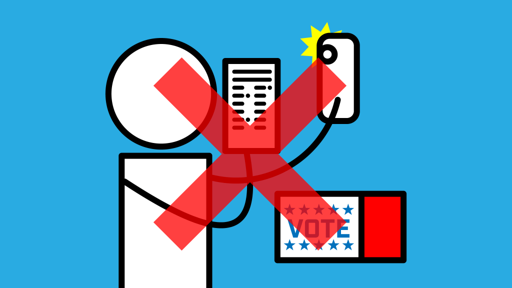 That social media post could disqualify your vote. Snap your #ImWithHer or #MAGA selfie without your ballot. It violates voting laws in many states to take a photo with your completed ballot, or even inside the polling place in some locations.
