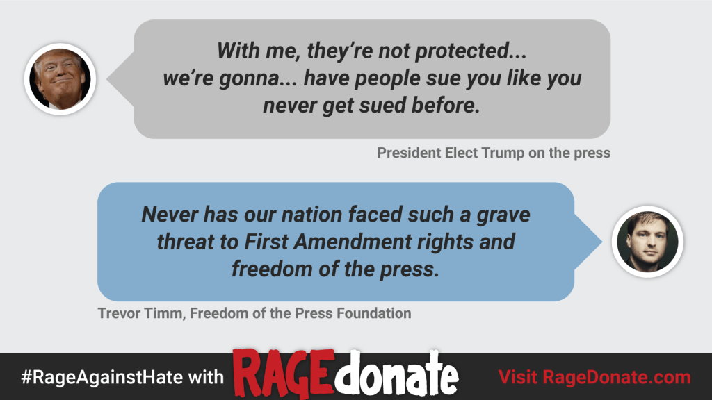 “I am angry that we’ve elected a man unfit for office,” said Earl Carlson, a product designer and spokesperson for RageDonate. “I love this country and worked with my friends over the weekend to make sure that the people most at risk from Trump’s policies and the people he hires to enact them have a better chance of fighting back.”
