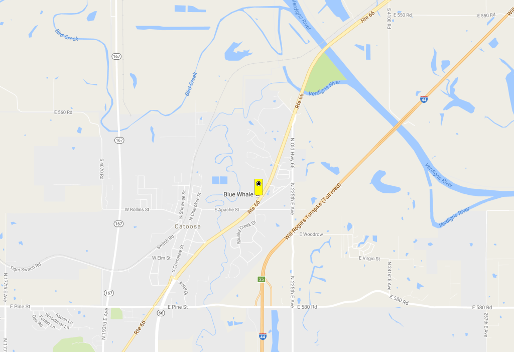 The new location is the first beyond the west coast, and my colleague Fitz Tepper called it right when anticipating something in the Central time zone because of the 7 AM start time. The specific location today appears to be near the Blue Whale of Catoosa, a roadside attraction on Route 66.