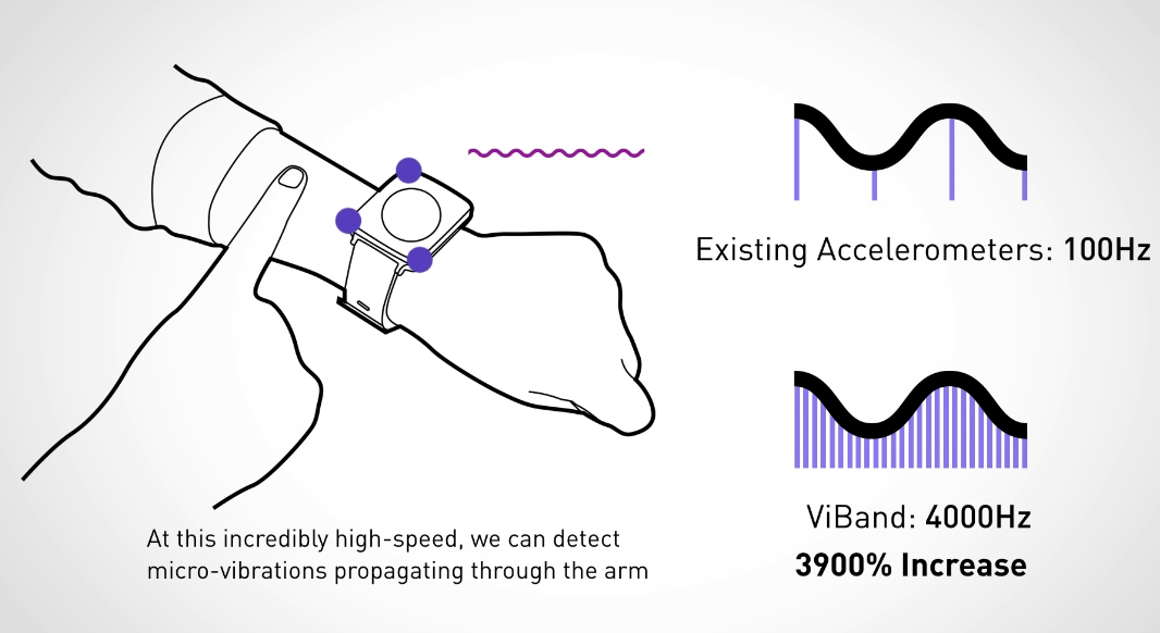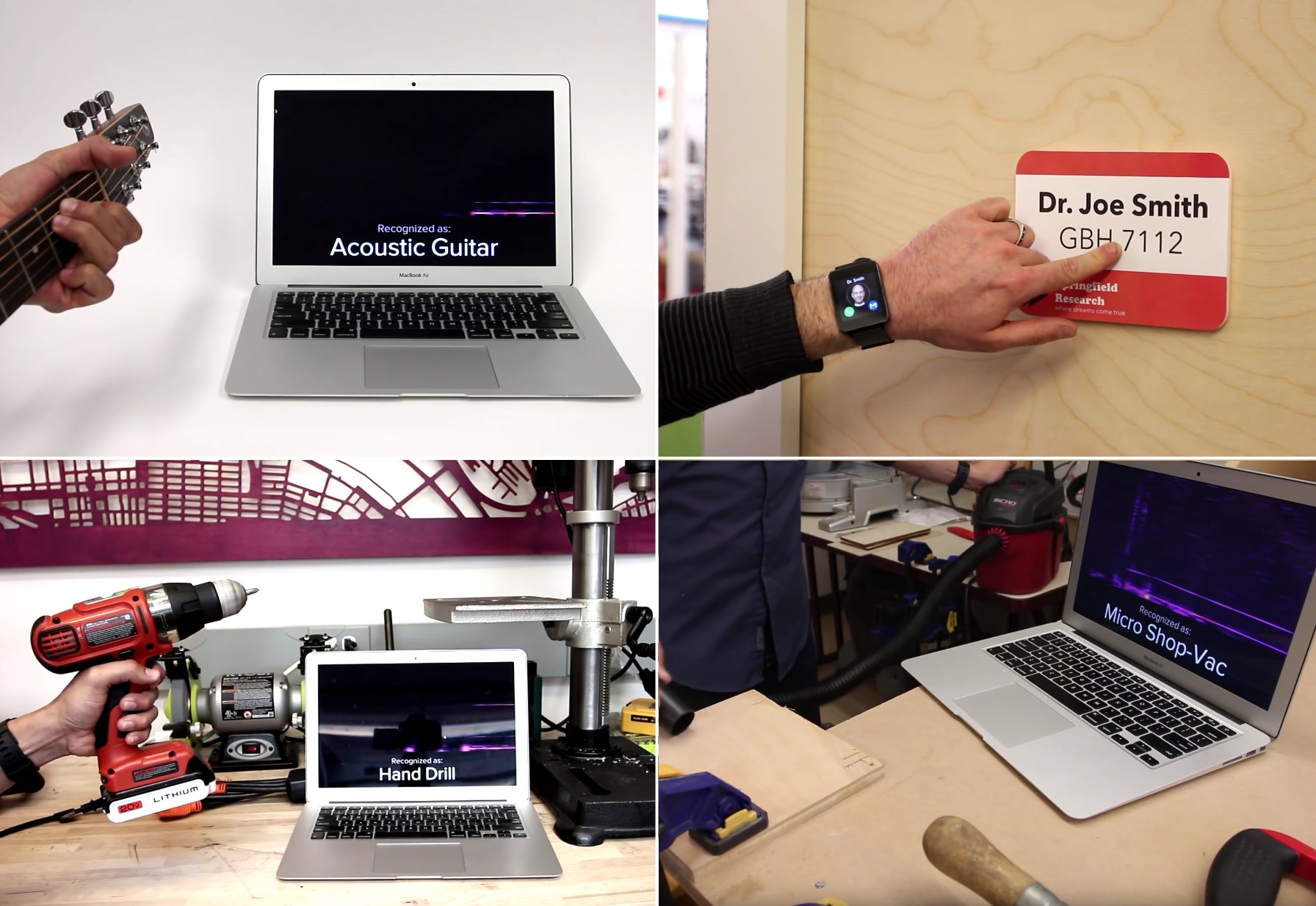 Researchers from Carnegie Mellon University created a system called ViBand that supercharges an ordinary smartwatch’s accelerometer, allowing it to sense incredibly tiny variations in vibration frequency. That could be the thrum of an engine, the note being tuned on a guitar or the slight differences apparent when you move your hand in different ways.