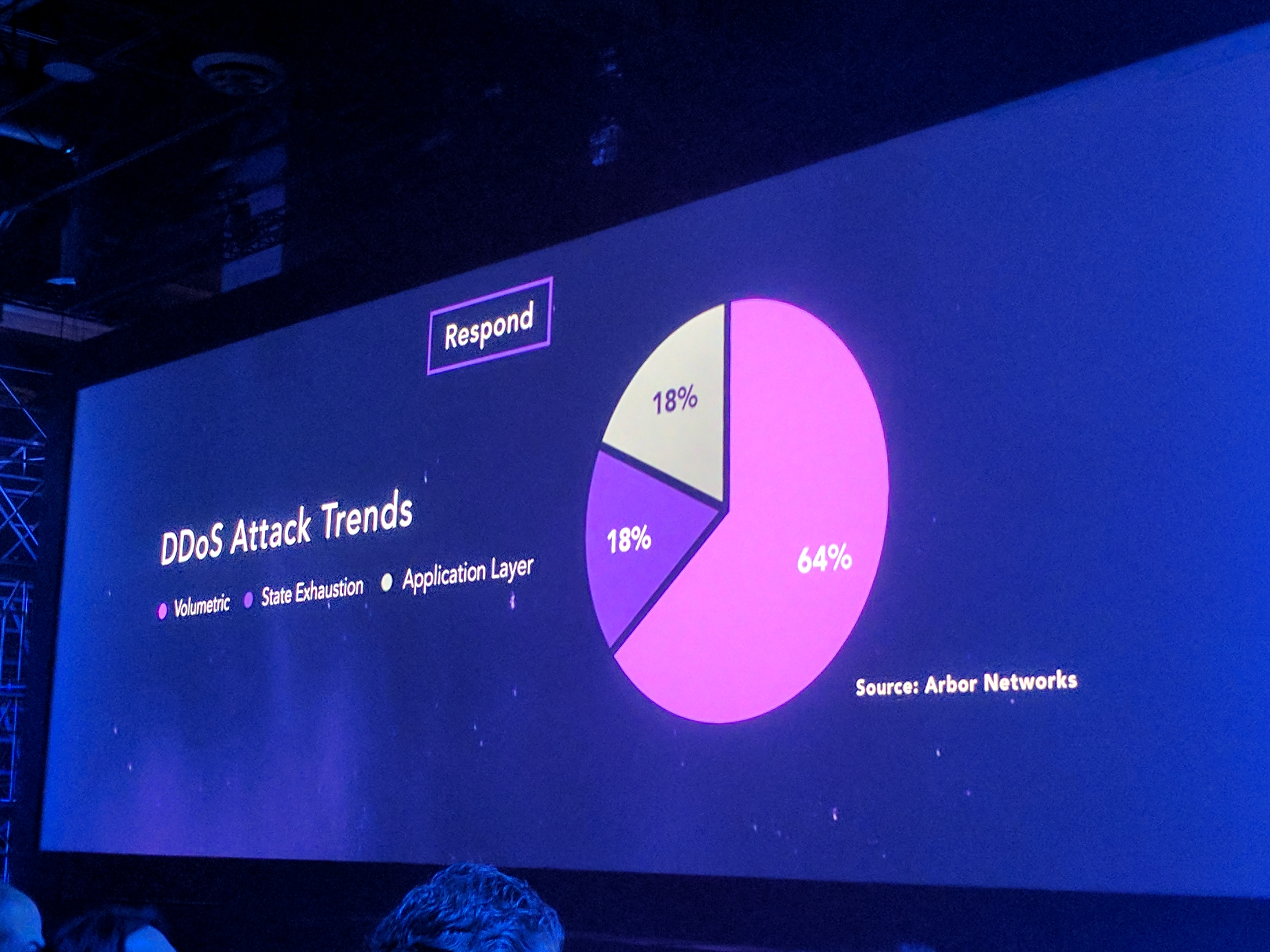 Vogels noted that the attacks Amazon is seeing include volumetric attacks that try to bring your network down and those that try to exhaust the resources of a server. The majority of the attacks are volumetric attacks (64 percent), followed by state exhaustion and application layer attacks.