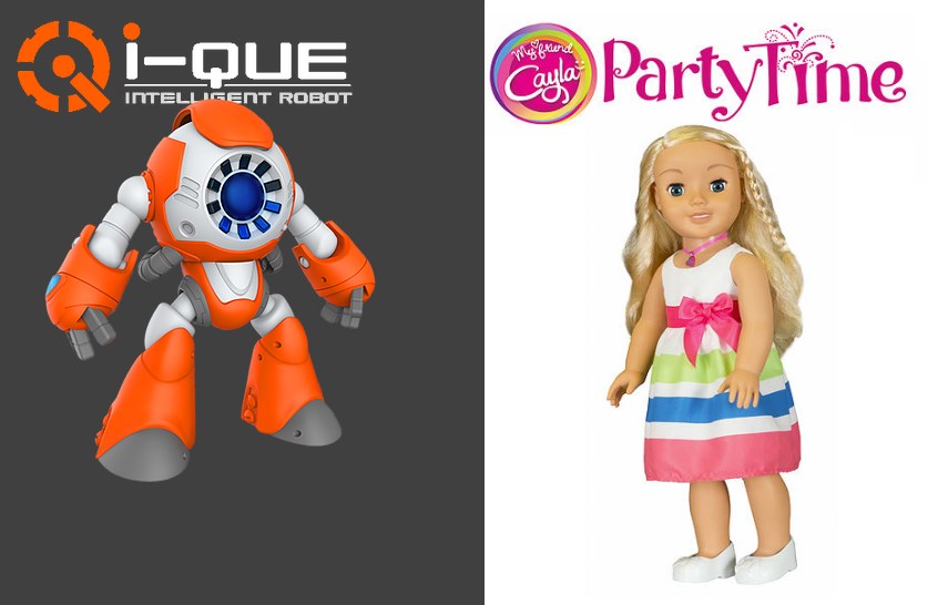 The toys in question, the girly “My Friend Cayla” and chunkily robotic “i-Que,” operate over Bluetooth through an app on your phone, which sends voice data to either Nuance or Google servers to be turned to text, and this text is used to serve queries to approved sources (with lots of blacklisted words like swears and other bad stuff). The Consumerist gives a good TL;DR of the allegations.