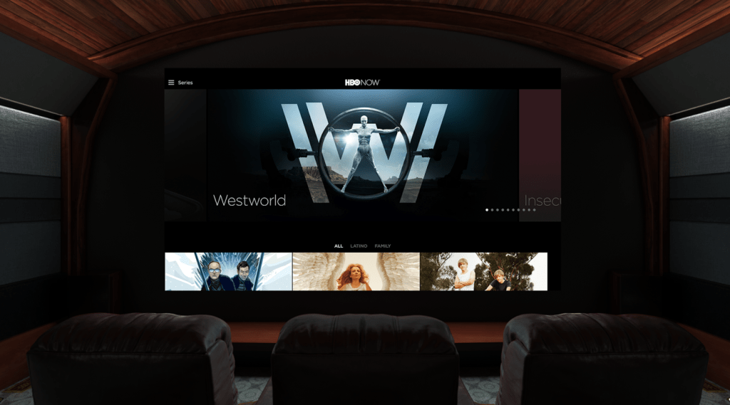 The HBO NOW app, which is identical in appearance to the HBO GO VR app, allows viewers of the gory/sexy/profanity-laden TV network’s subscription service to enjoy their favorite HBO shows and movies in a home theater virtual reality setting.