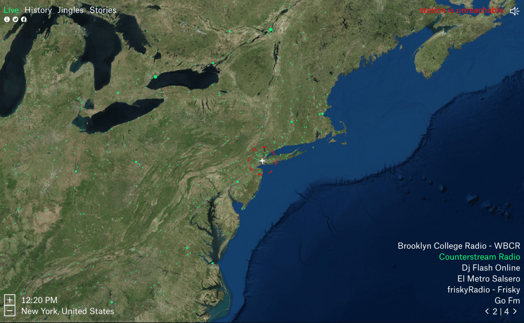 The interface itself is surprisingly calming. You’re immediately drawn to the farthest corners of the Earth. Rolling over Iceland brings up some Spice Girls and some local talk radio. Visiting Tehran calls a swirl of disco out of the ambient hisses and pops that Radio.Garden adds to the experience. It’s a beautiful reminder that wherever you go you can probably hear Eric Clapton or Jamiroquai clamoring out of a tinny speaker in some back-alley cafe or a dark taxi.