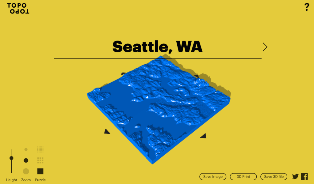 TopoTopo, as it’s called, is pretty easy to grok. Put in a location and it loads right up; adjust the zoom and height (a multiplier of actual altitude, for emphasis), then select whether you’d like it whole or sliced into square puzzle pieces