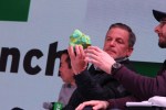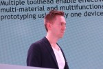 The entire system can be refitted for different jobs in a few seconds. He was able to remove a dual-material plastic extruder and stick on a CNC system on stage. It also allows you to mix two colors in one model, a first for FDM-style prints.