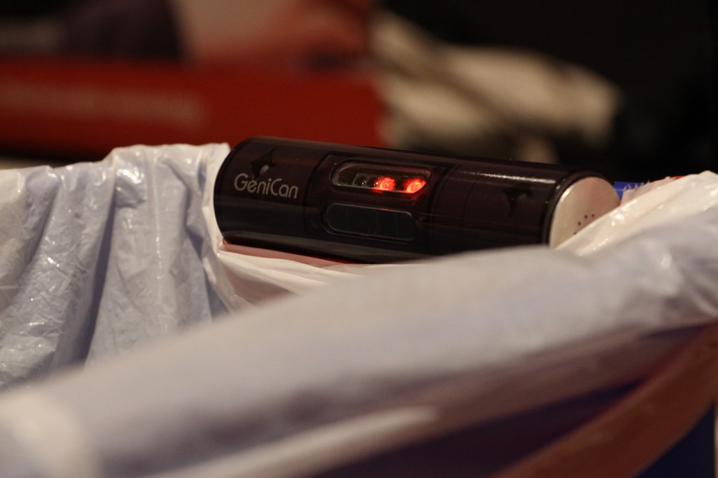 At first glance, the GeniCan is completely ridiculous. At second, it’s actually kind of brilliant. The scanner clips onto the side of a trash can, an always present reminder to scan items when you run out. Before throwing an object out, you hold it up to the IR scanner and it adds it to your list.