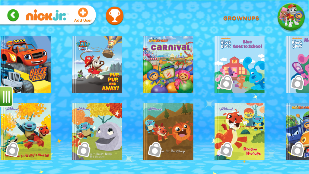 Nick Jr. Books ships with three free titles, but there are 49 more available for in-app purchase at $2.99 a pop. Although that’s a lot cheaper than their hardbound counterparts, the price still feels a bit too steep to encourage too many book buying sprees.