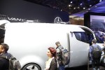 The van on display at CES had a working front LED array, which can display rudimentary images, including animations of pedestrians crossing in front. The information display can also indicate the vehicle’s intended behavior, such as turns, to outside passengers.