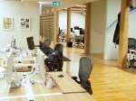 Shopify’s new digs are very similar to its existing space in the city, with high ceilings, huge wooden beams and communal work spaces. Shopify has intentionally drawn on the example of Google in developing its internal culture, and it shows in its approach to office design, with free catered lunches, in-house activities and plenty of employee-focused events. Floors blend into one another, including with a wide, shallow staircase that doubles as stadium-style seating for town halls and other meetings.