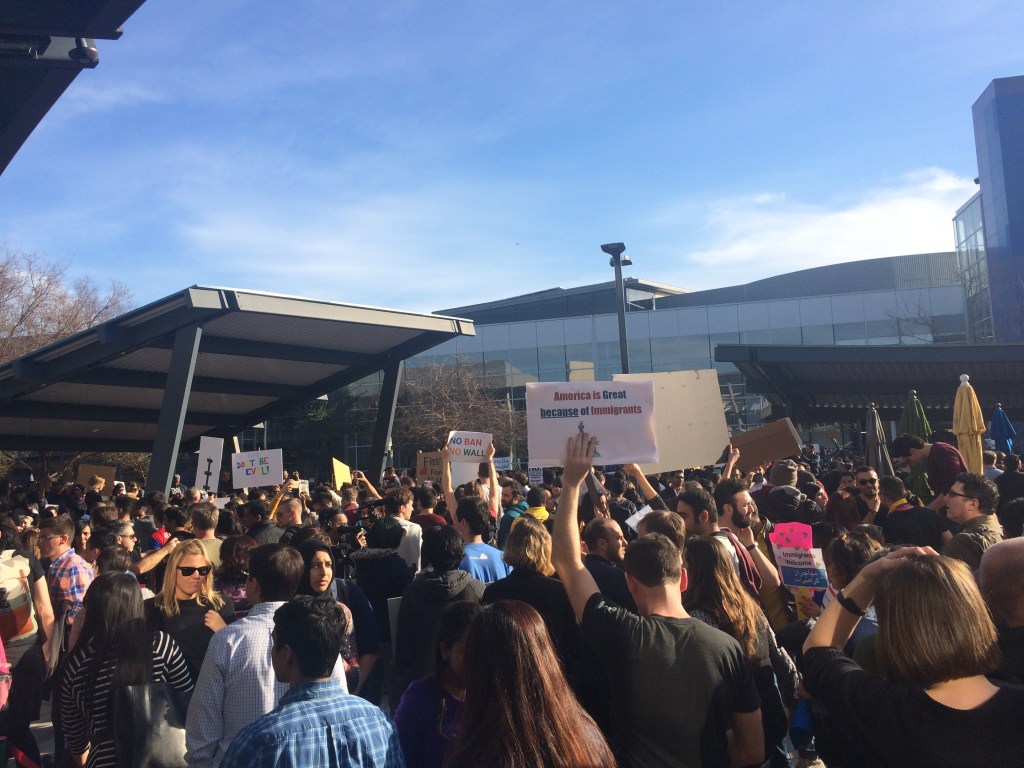 Over 2,000 Google employees rallied against President Donald Trump’s executive order that bans immigration from seven majority Muslim countries today. Googlers all over the country, including at campuses in Mountain View, San Francisco, New York and Seattle, are rallying against the immigration ban.