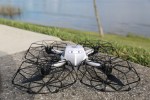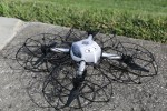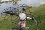 The drones are simple. They’re about the weight of a volleyball. The housing is Styrofoam and there are simple metal cages around the four props. They are designed to be assembled in less than 15 minutes and Intel builds the drones in a facility in Germany. There are no screws and everything snaps together. And then on the bottom of the drone is the large, multicolored LED light that paints the sky.