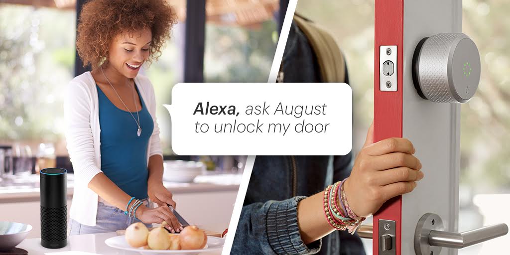Over the summer, smart lock maker August announced its first integration with Amazon’s smart home assistant Alexa. It was pretty basic – letting users check whether unit was locked or not. Naturally, people wanted to know, for better or worse, when they’d actually be able to unlock their front door with the sound of their voice, for when you’re chopping onions like the lady in the above press photo.
