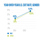 The exit rate for people of color was slightly higher than their majority colleagues — 15.5 percent for underrepresented minorities compared to 15.3 percent for white and Asian employees. Retention for black employees, however, was slightly better, with an exit rate of 15.2 percent.