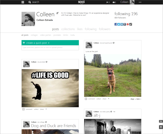 But Facebook this wasn’t. It actually used Facebook log-in for user sign-up so if anything it is/was a Facebook app. If you’re looking for a comparison, the focus on image collages and video made So.cl a little like a Pinterest-style service for visual content.