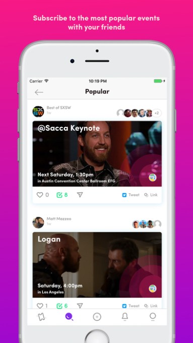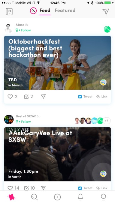 Instead of ingesting feeds, everything featured in the app is user-generated content — meaning it’s an event someone felt the need to share. The app supports any kind of event, from those taking place in the real world to those that are occurring online, like a live stream or an AMA on Reddit. You can even deep link to another mobile application so it launches the right page in the app where the event takes place.