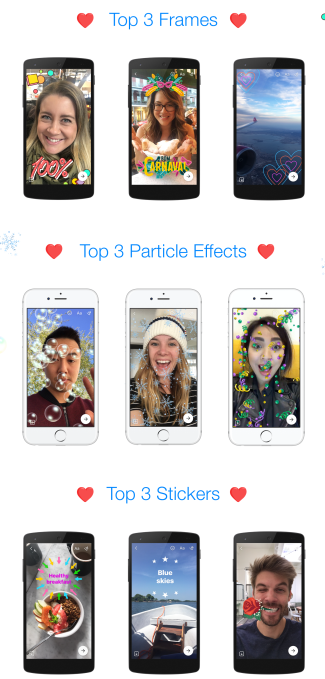 Before or after you share, you can embellish your content with drawing, text captions, animated selfie lenses, environmental effects like overlaid bubbles or lava lamp colors, style-transfers that make your image look like a painting or sketch, virtual “Dress Up” props, speech bubbles, stickers and more than 5,000 illustrated filters.