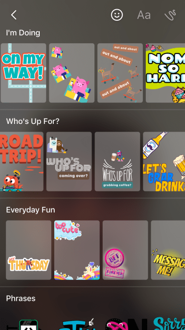 - Personalized avatar stickers like Bitmoji (Snapchat)