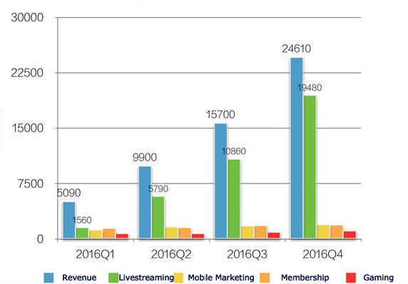 Value-added service revenues from their social network, which totaled $19.1 million in Q4 2016, mainly consisted of membership subscription revenues and virtual gift revenues. The firm cites the increase of premium VIP users and total users, as well as virtual gift service, as the reason.