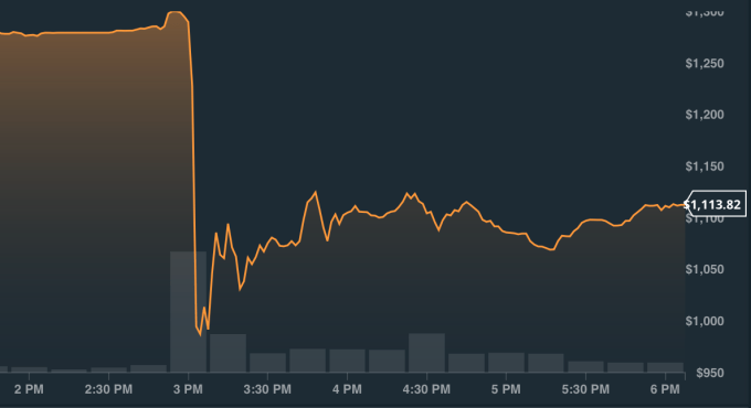 Instead, the price dropped about 22 percent, from about $1,295.00 to as low as $1,000 as soon as the news broke. It’s since stabilized to about $1,120.00, which is still a drop of about 14 percent.