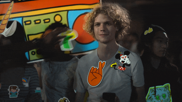 So this brings us to today’s ad. It’s a cheerful ad filled with teenagers running around and slapping stickers on people, food and objects. It is turning a boring messaging app into a pop culture symbol — are you team blue bubbles or team green bubbles?