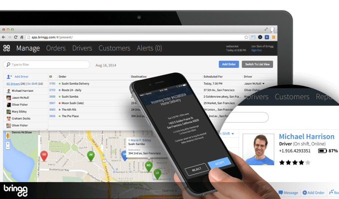 Founded in 2013, Chicago-headquartered Bringg was started by Raanan Cohen, the former founder and CEO of MobileMax; and Lior Sion, previously the CTO of Gett and Clarizen.com. The idea was to provide businesses an easier way to offer an Amazon- or Uber-like level of visibility into their own delivery operations, including consumer-facing features like delivery notifications, the ability to track a driver on a map, driver-to-customer communications, star ratings and more.