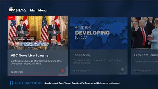 When you first launch the updated ABC News app, you’ll be shown the top news stories of the day in the main menu. To use the new feature, you’ll click into the “Live Streams” section instead of scrolling through the other content.