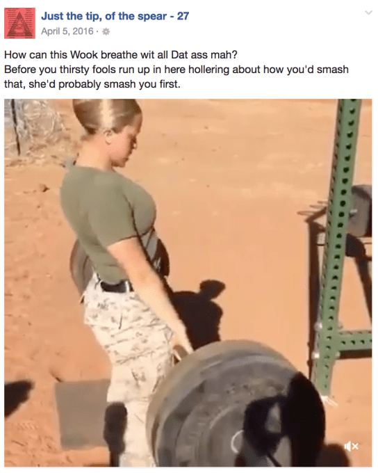 A 2014 NPR story also detailed the group’s toxic culture. In an interview, Afghanistan veteran Katherine Keleher explained how her photos appeared on JTTOTS three separate times. “They posted pictures of me and they were commenting about wanting to rape me, or saying I looked like a man, or things of that nature,” Keleher told NPR.