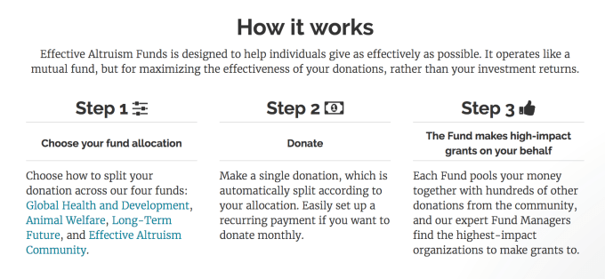 Giving to charity without doing intense research is like burning money, because a study showed that 75 percent of social programs have zero or negative impact. Effective Altruism does the legwork for you. You sign up, choose causes you care about like global poverty or animal treatment, and make a donation. Effective Altruism finds the charities with the most positive impact in those areas and routes the donation for you for free. It believes it could provide donors 400X more impact per dollar, and could boost charitable giving by increasing confidence that the money gets good done.