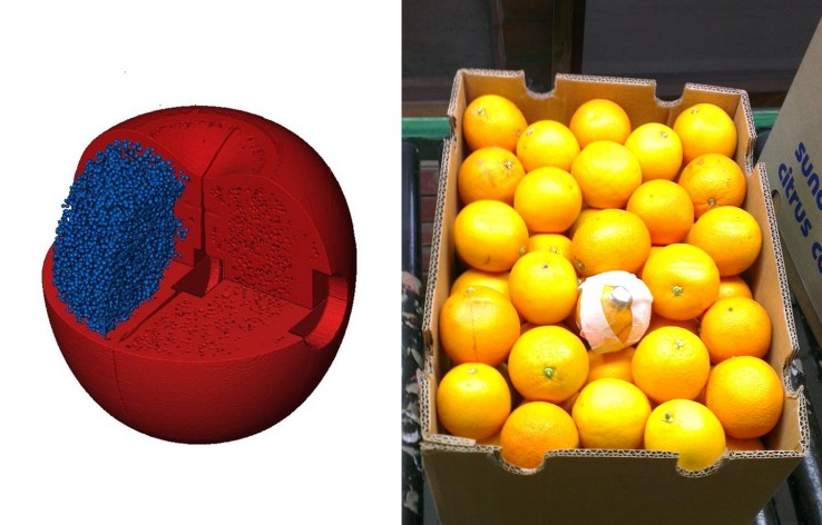 These little robo-fruits are the solution. They’re molded to the exact shape of the fruit itself, and the material they’re made of is customized to be the average density of the fruit, as well. That means they’ll act just like one when it comes to settling in their box, warming and cooling and so on. You pull it out at the end of the ride and see how it fared — they’re still working on adding wireless.