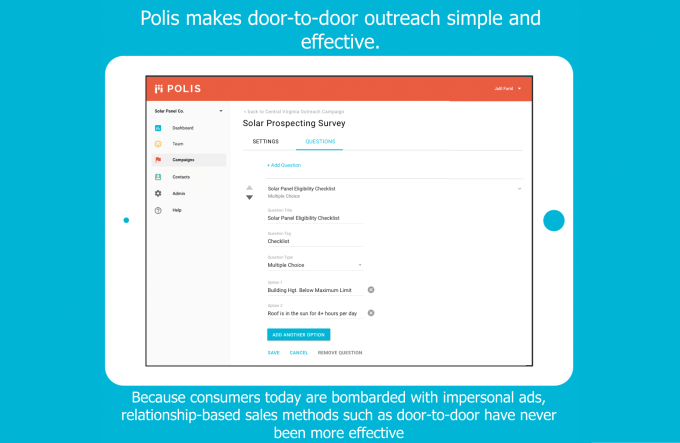 There’s really not much difference between political canvassing and the door-to-door sales pitch. Startup Polis is leveraging its campaign experience to help large companies woo customers with that personal touch that can mean so much.