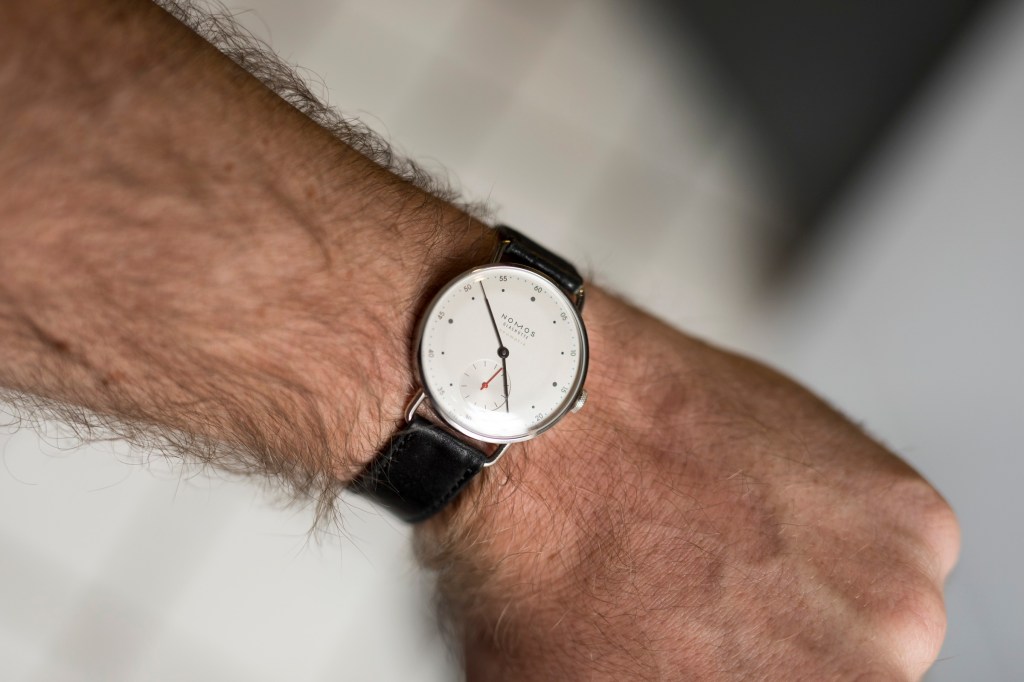 Nomos’ Metro neomatik is especially representative of the brand, with a relatively new movement for the company, which manages to offer a self-finding rotor in an incredibly thin mechanical package, meaning you never have to charge or worry about replacing batteries, but still get a very low profile on the wrist. It’s also very small in diameter relative to most contemporary watches, with a 35mm diameter that also adds to its understated appeal.