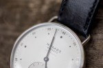 While the Metro neomatik features a small overall diameter as mentioned, I found that it actually wears larger than the numbers would lead you to believe. The very thin bezel and the classic, retro-style lugs lend to this effect, as does the relatively thin 17mm Horween leather band. The diminutive, knurled crown on the right side of the face also gives prominence to the face, and the closeness of the hour markers to the outer edge of the face also help give it a larger look than you might expect.
